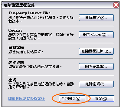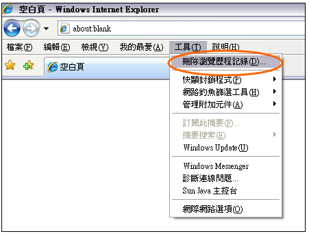 | b. | Select “Delete Browsing History” on the “Tools” menu; 點選「工具」中的「刪除瀏覽歷程記錄」; |