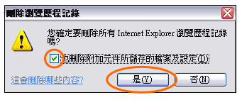| d. | Please put a tick on the box beside “Also delete files and settings stored by add-ons”, then press “Yes”; 請於「也刪除附加元件所儲存的檔案及設定」加上剔號,然後按「是」; |
