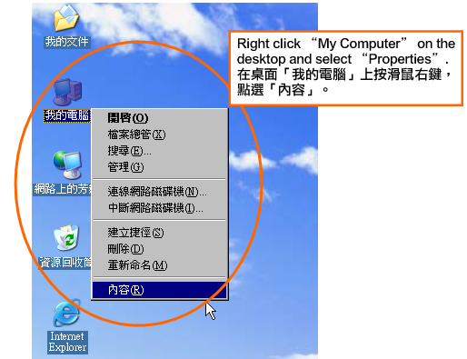 | a. | Open the Internet Explorer browser; 開啟瀏覽器(Internet Explorer); |